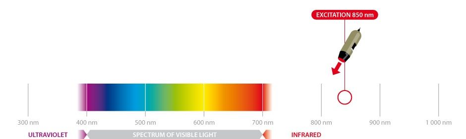 AM4115-FIT har speciell belysning med LED-lampor som avger IR-ljus runt 850 nm-spektrumet.